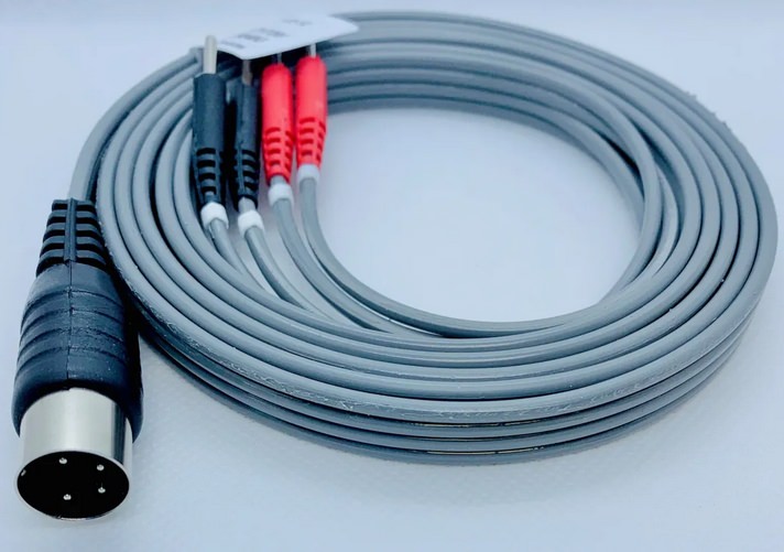 Chattanooga Compatible 4-Conductor Leadwire. A 72″ or 120″ long cable with a 4-Pin DIN to 4 Pins marked Channel 1 and 2