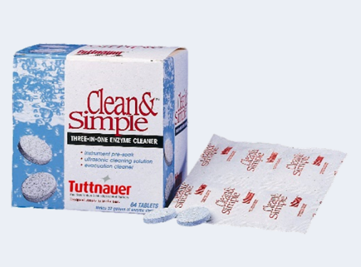 Clean & Simple is an ultrasonic/enzymatic solution dispensed in a unique tablet form. Drop 2 tablets into your ultrasonic tank already filled with tap water and the tablets will dissolve in about a minute. This is a non-ionic solution which is non-corrosive, non-toxic, biodegradable and non-caustic.