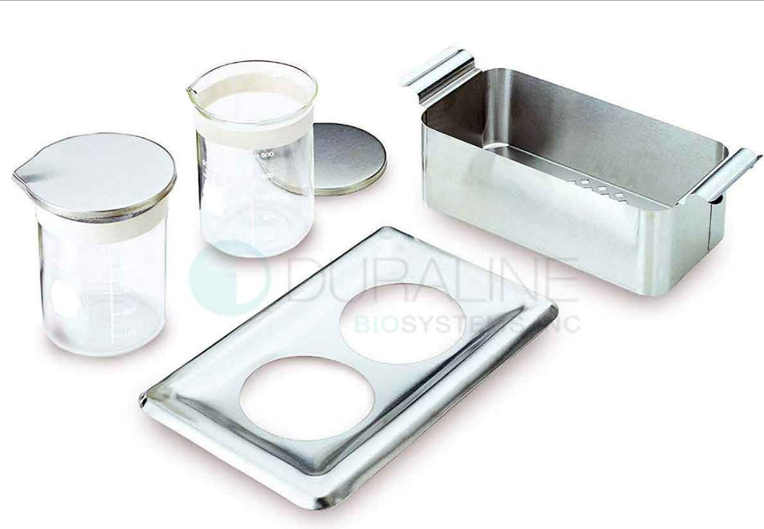 1/2 size ss basket, positioning cover and 2-600ml beakers with lids and bands